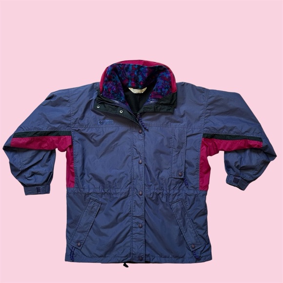 All the cool kids had a convertible Columbia jacket 😎Two in one. Fleece jacket removes easily. Cool abstract pattern on collar of fleece.