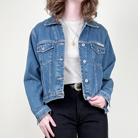 Vintage 90s Cropped Denim Jacket Jean Coat Oversized Relaxed Fit Crop 1990s Y2K