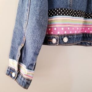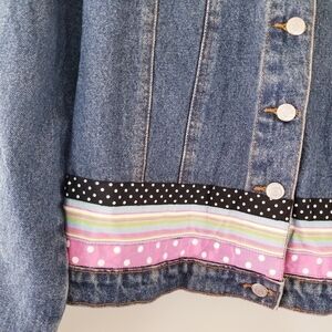 Vintage 90's Denim Jacket With Colourful Ribbon Details Size Medium Cotton