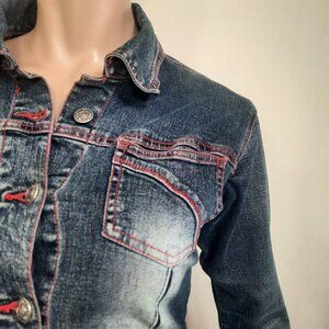 Vintage 90s Denim Shirt Jean Jacket Shacket Size 7 Western Stretch Fitted