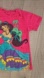 Vintage 1990s Disney Aladdin, Princess Jasmine Graphic Tee. base is a bright pink with a Jasmine Graphic spreading across most of the front. there are Jasmine like jewels attached, as well as brass buttons for accents, and ribbon bows in her hair.