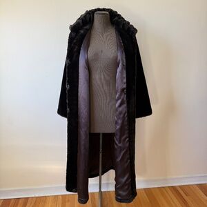 Vintage 90s Elegant full-length faux-fur coat in deep espresso/chocolate