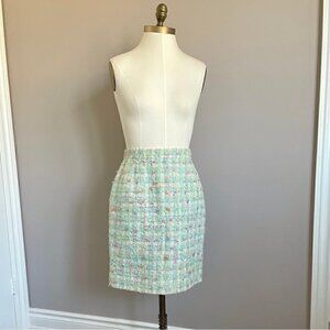 Vintage 90s Emmanuelle Khanh Paris Green Confetti Bouclé Wool Skirt - Small