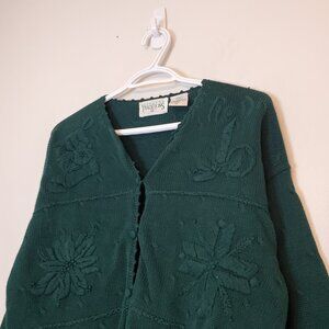 Vintage 90s Festive Knit Cardigan Sweater Green Size L