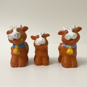 Vintage 90s Fisher Price Little People Wheelies Farmer and Cow Farm Animals