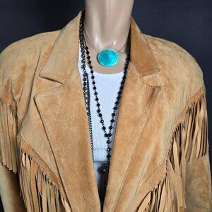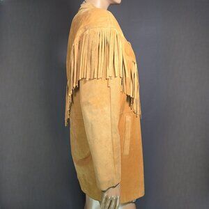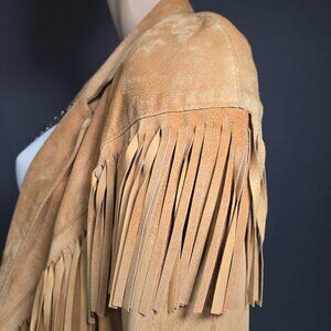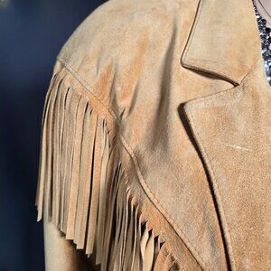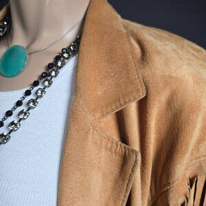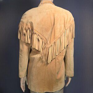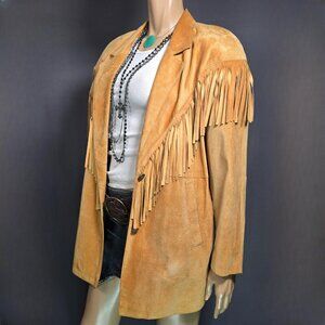Vintage 90s Fringed Suede Jacket Size M Tan Brown Western Boho Hippie Festival
