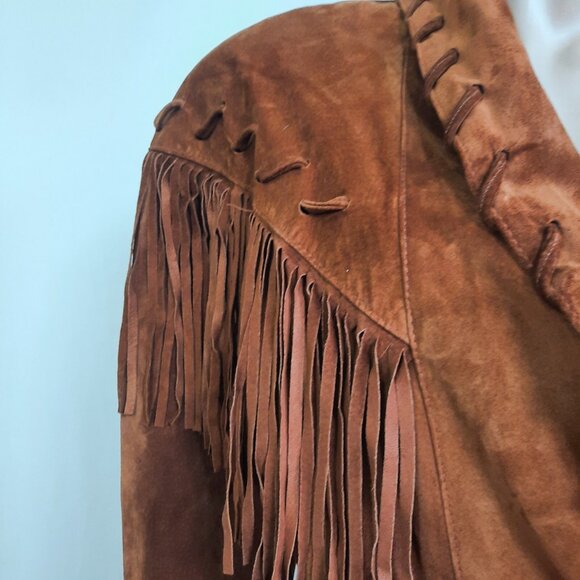 * Vintage 90's tan brown suede fringed Western jacket