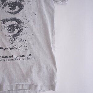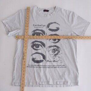 Unleash bold '90s attitude with this Vintage Funeral White Black Eye for an Eye Exodus 21:23-27 T-Shirt! Crafted from a soft cotton blend, this striking white tee features a provocative black graphic and biblical reference, perfect for those who love edgy, faith-inspired vintage style. Ideal for collectors or casual wear, it’s a rare gem from the '90s underground scene.