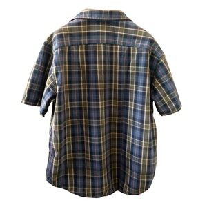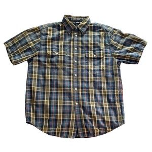 Vintage 90s GAP Shirt Men L Blue Plaid Short Sleeve Button Down Casual Cotton