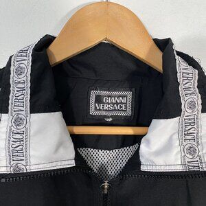 Vintage 90s Gianni Versace Medusa Head Taped Nylon Track Jacket Black mens XL