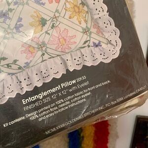 Vintage 80s/90s golden bee make your own pillow embroidery kit. Pattern is prestamped, a portion has already been completed by a proficient crafter, stitches look perfect. All original materials are contained within the original package.