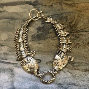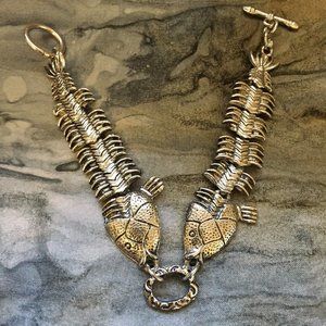 Vintage 90s Goth Articulated Pisces Skeleton Fish Anklet Costume Jewelry