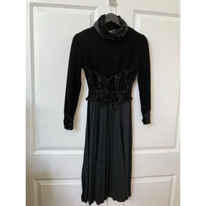 Vintage 90’s Grace Black Velvet Long Sleeve Midi Dress Goth Whimsical Fairy
