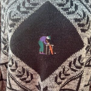 Vintage grey black cricket embroidered oversized knit crewneck pullover Grandpacore dad sweater