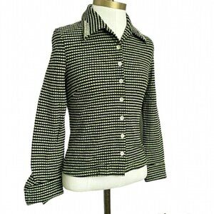 Vintage 90s Green Black Gingham Check Long Sleeve Knit Button Shirt Top - S