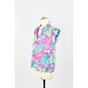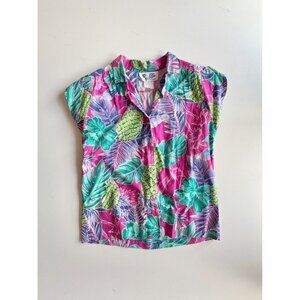 Vintage 90s HILO HATTIE Hawaiian Floral 100% Cotton Cap Sleeve Shirt Top, Size L