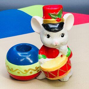 90s HOLIDAY FRIENDS Mouse Drummer Candleholder Bisque Figurine