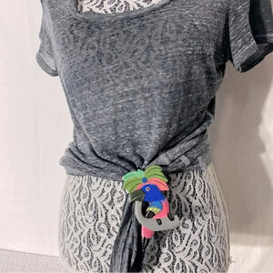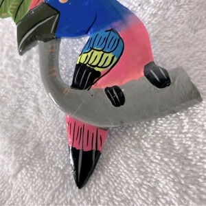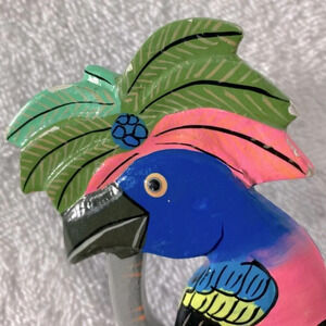 Vintage 90s Hand Painted Wood Tropical Bird Palm Tree T Shirt Tie Clip