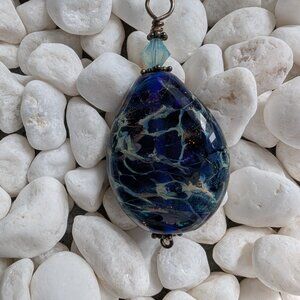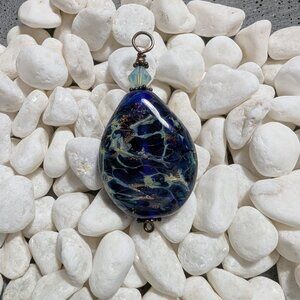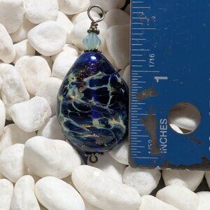 Vintage 90s Handmade Glass Lampwork Bead - Murano Glass - Blue Pendant