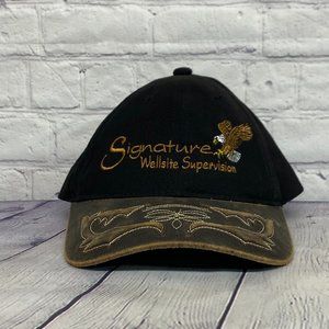 Vintage 90s Hat Cap Strap Back Black Signature Wellsite Supervision Eagle Logo