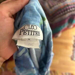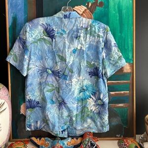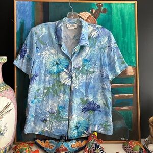 Vintage 90s Hippie Boho Floral Blue Short Sleeve Blouse 8
