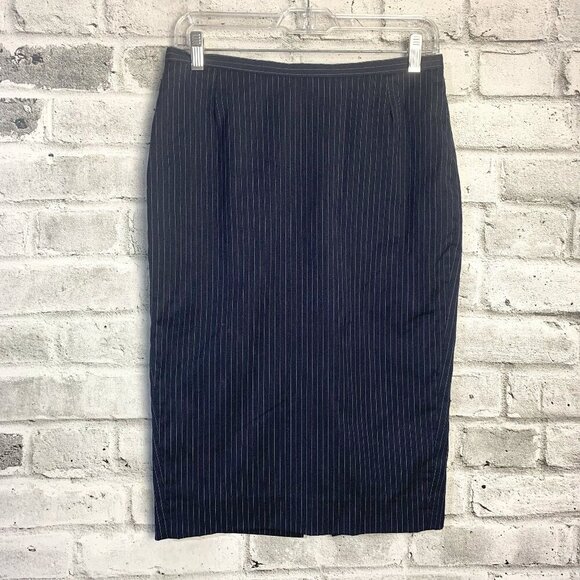Vintage 90s Holt Renfrew Navy Pinstripe Straight Pencil Skirt