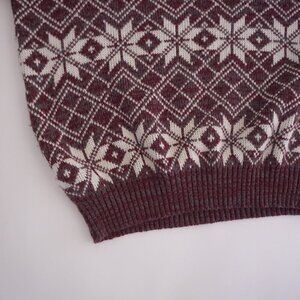 Vintage '90s Impulse Maroon White Snowflake Argyle Knit Crewneck Sweater Large