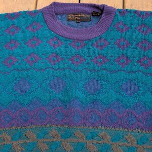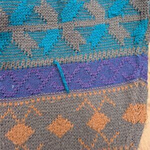 Vintage 90s Intermission Aztec Geometric Knit Sweater - Teal Purple Blue XL