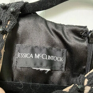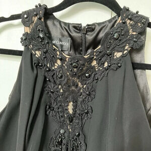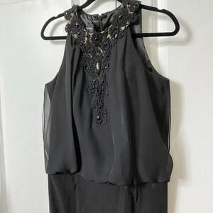 Jessica McClintock Black Beaded Halter Faux 2 PC Mini Dress 90s Y2K