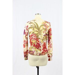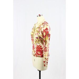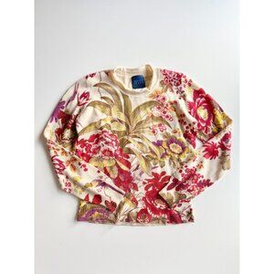 Vintage 90's KENZO JEANS Beige Red Floral Wool Knit Crew Neck Sweater, Size L