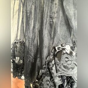 Vintage 90s Kasara Black Nylon Coquette Nightgown Sleepwear Lingerie Top Small