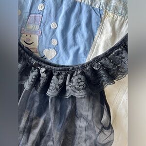 •Adorable lace detailing, bow and frill, and mesh sleeves