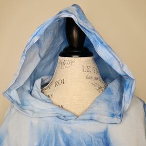 Rare Retro Lightweight Blue & White Tie-dye Long Sleeve Hoodie with kangaroo pouch and large Graphic Print on back, by LA Cool.