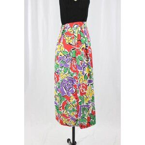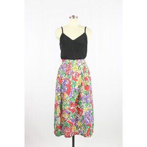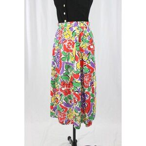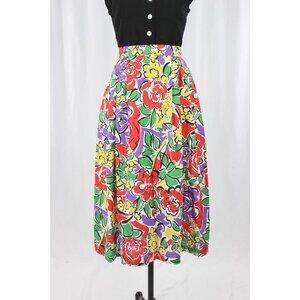 Vintage 90's LANA LEE Floral Print Cotton Pleated A-Line Midi Skirt, Size 9/10