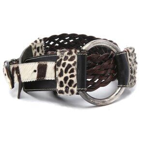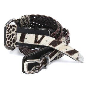 Vintage 90s La Doppia Vita Leather Pony Hair Belt Animal Print Braided Brown White