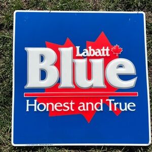 Vintage 90s Labatt Blue Honest and True Metal / Tin Advertising Sign