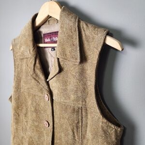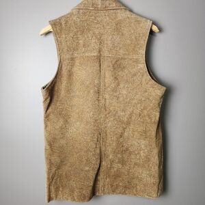 Vintage 90s Leather Embossed Paisley Button Up Vest Size Medium