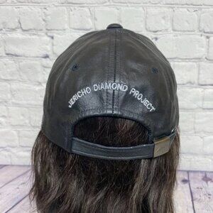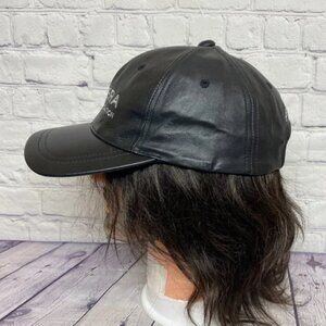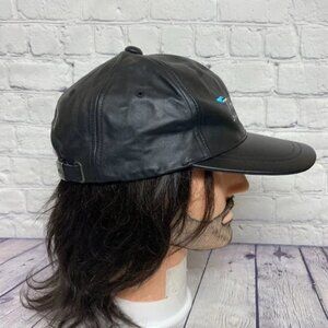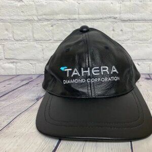Vintage 90s Leather Hat Cap Strap Back Black TAHERA Diamond AJM