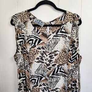 Vintage 90s Leopard Animal Print Maxi Dress Sleeveless Witchy 1990s Plus Size 3X