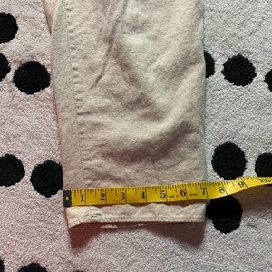 These vintage lightweight natural fiber linen cotton blend pants by Cin Cin are a stylish addition to any woman's wardrobe. Made of a comfortable and breathable cotton-linen blend in a cream color, these high-rise trousers feature a pleated front and a wide tapered leg. The lightweight and stretchy fabric back waistband makes them perfect for a variety of occasions, from casual outings to parties or even workwear. With a relaxed fit and a variety of themes including retro, bohemian, preppy, old money and hipster, these pants are versatile and on-trend for any season. Made in Canada, these pants are a unique and timeless choice for women looking to incorporate a touch of vintage charm into their wardrobe.