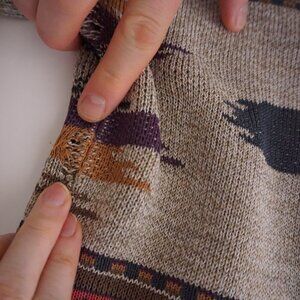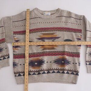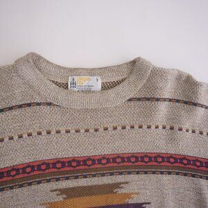 Vintage '90s London Fog Taupe Purple Aztec Cotton Crewneck Knit Sweater Large
