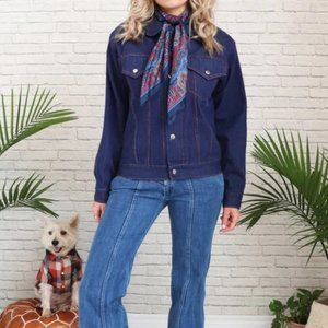 London Jean (Victoria's Secret) Dark Wash Heavy Blue Denim Jacket with orange stitching from 1990s.