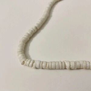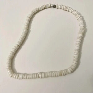 Both necklaces are pre-owned and in used condition. They have some stains marks and wear on them. The one necklace is a Puka shell but I'm not sure what the second one is made of. Please see all photos for exact item.