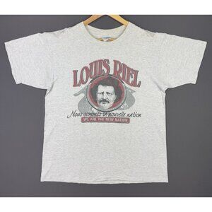 Vintage 90's Louis Riel Logo Grey Shirt Canada Politician Manitoba Rare Tee Art