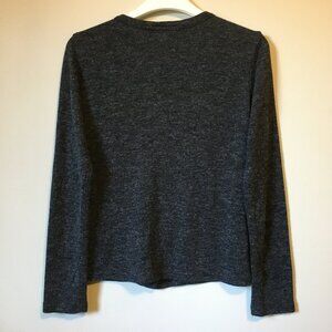 Very good 90s vintage condition, black (white and black to create a grey with just the tiniest note of blue) cardigan sweater with a delicate button down closure in slightly blue/purple tone buttons by Garage. Made in Canada, this sweater cardigan is just so sweet.