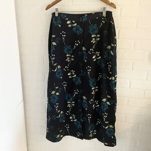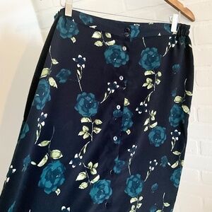 Vintage 90s Maxi Skirt Button down Dark Floral Cottagecore Fairy Roses Navy Sz M