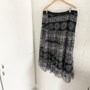Vintage 90s Maxi skirt Celestial print Boho Whimsical Black White Witchy 16W