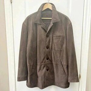 Vintage 90s Men’s Brown Suede Leather Jacket Oversized Size Large