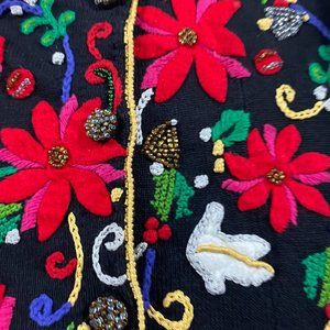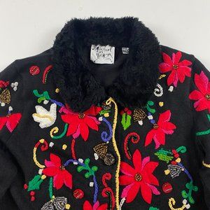 Vintage 90s Michael Simon Embroidered Cardigan Sweater Women's XL Poinsettia