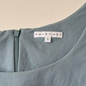Vintage 90s Minimal Pale Blue Mini Dress Size 5 6 Medium Structured Sleeveless
